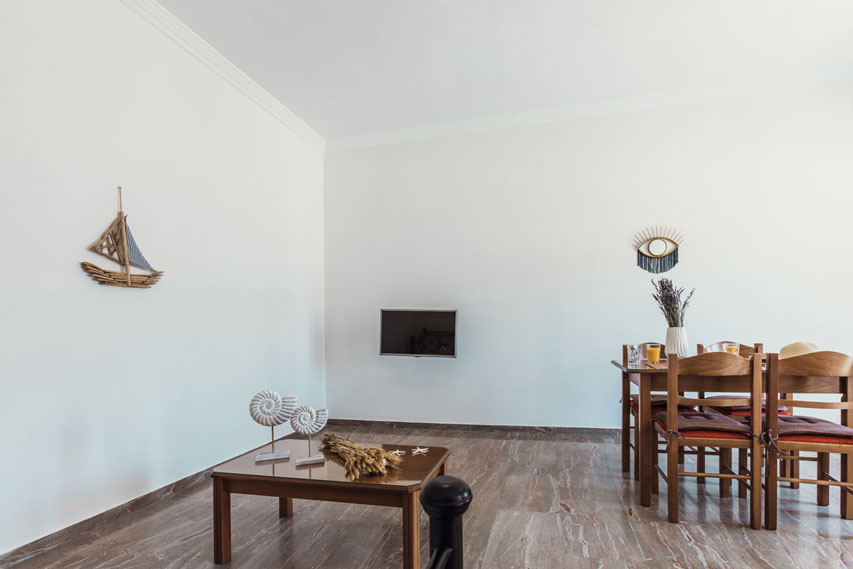 On the first floor there is a luxury apartment of 67 sq meters, comprised of a colorful bedroom with a double bed, a big wardrobe and balcony, a sunny living room with couch – double bed and a 42’ AndroidHDTV set, a large fully equipped and modern kitchen, dexterous, which will inspire you to create the delicacies you like. Moreover, there is a sunny, modern bathroom with a cabin shower and a shaded terrace.